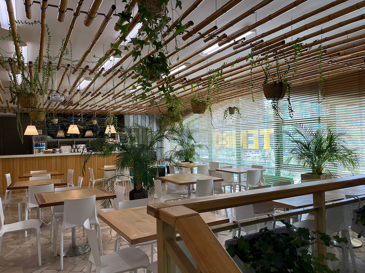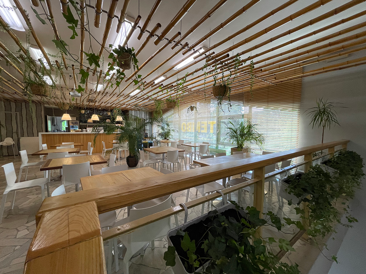 Restauracja TEMBO to wyjątkowe miejsce położone na piętrze słoniarni, gdzie egzotyczna atmosfera łączy się z komfortem i najwyższą starannością kulinarną. Przestronna, elegancka sala wypełniona jest bujną roślinnością, a wystrój inspirowany klimatem Afryki pozwala poczuć się jak w odległym zakątku świata – bez opuszczania miasta.