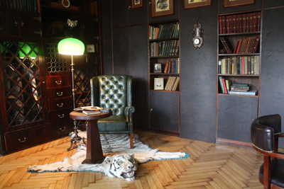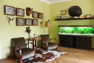 w języku niemieckim i większość o tematyce zoologicznej. W gabinecie na stoliku oryginalna popielniczka dyrektora Żabińskiego przekazana przez jego córkę. Na ścianach i na biurku rodzinne zdjęcia.