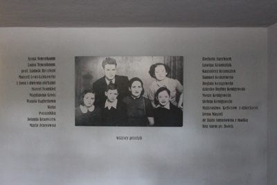 o heroizmie pp Żabińskich. Ich nazwiska wypisane są na ścianie.